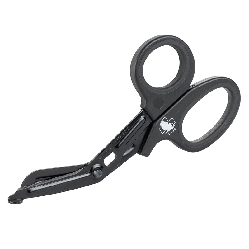 Premium-grade stainless steel with soft-grip, non-handles, providing control when gloves are wet. The 7.25" shears feature deep serrations for precise cutting performance on bandages, clothes or tough materials; ideal for both everyday and emergency use. The rounded points provide for patient safety, without impacting device efficacy. Tactical black.