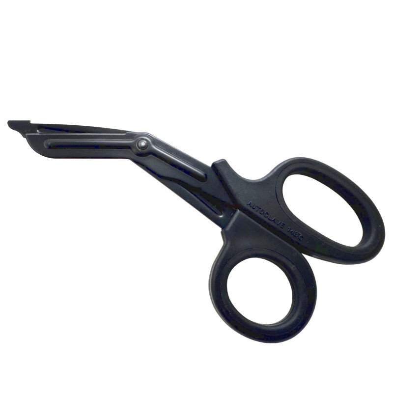 Premium-grade stainless steel with soft-grip, non-handles, providing control when gloves are wet. The 7.25" shears feature deep serrations for precise cutting performance on bandages, clothes or tough materials; ideal for both everyday and emergency use. The rounded points provide for patient safety, without impacting device efficacy. Tactical black.